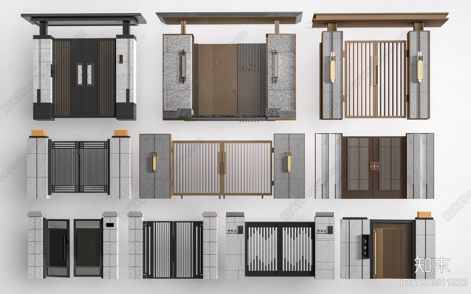 - 新中式庭院门 现代院墙 庭院门 院落围墙 小区围墙