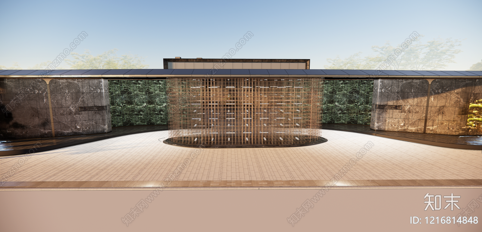 - 新中式入口大门 现代小区入口 景观雕塑入口 格栅入口 小区大门