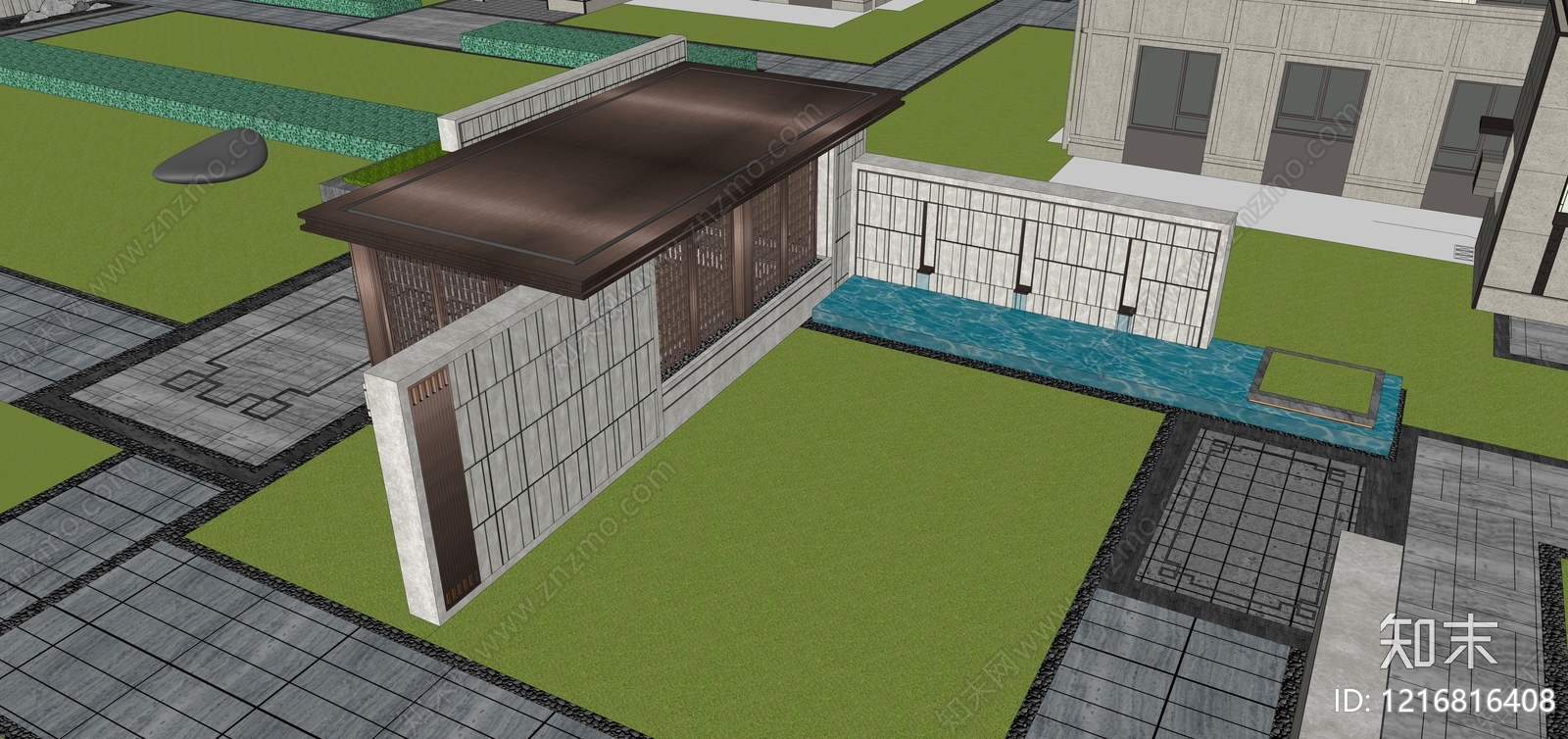 新中式景墙 廊架