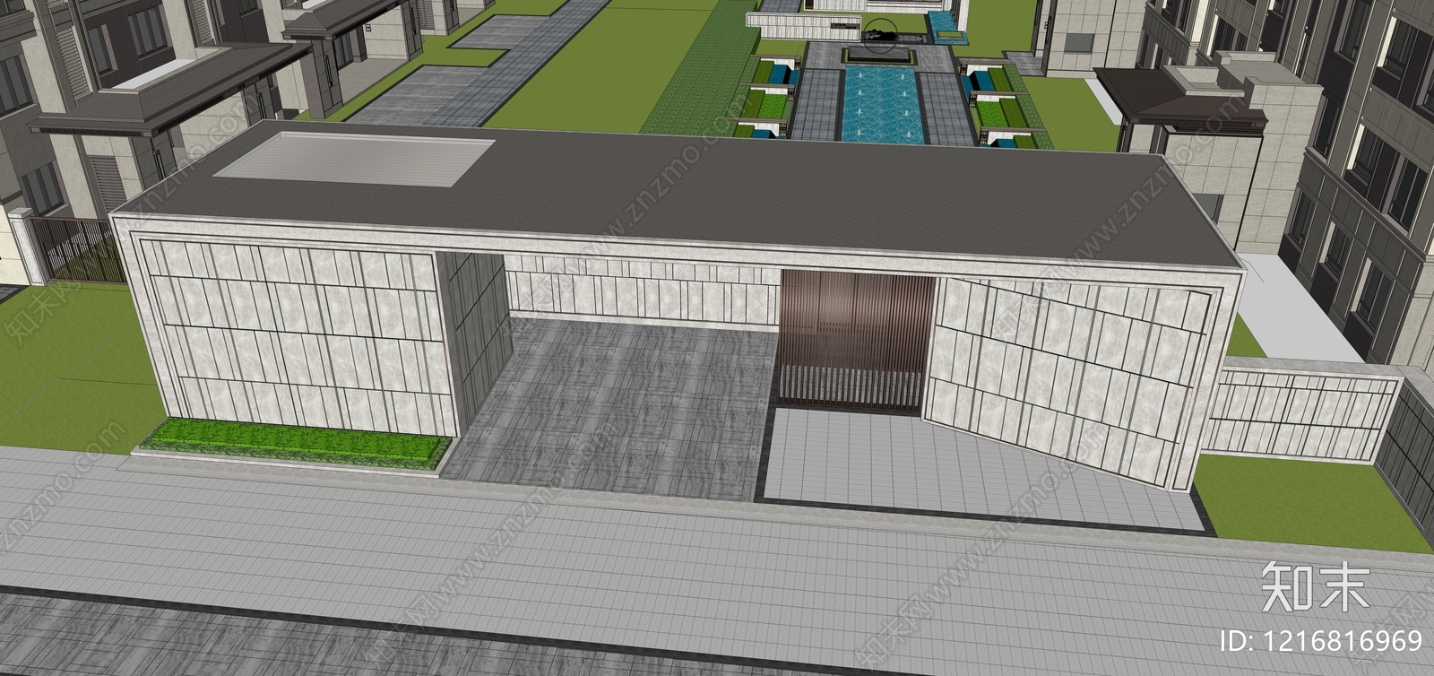 - 现代入口大门 住宅大门 住宅入口景观 住宅水景景观 住宅雕塑景观