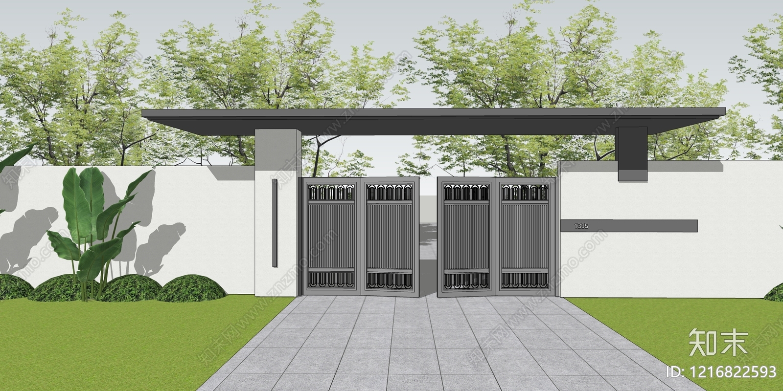 - 现代简约入口大门 现代大门 庭院大门 景观大门