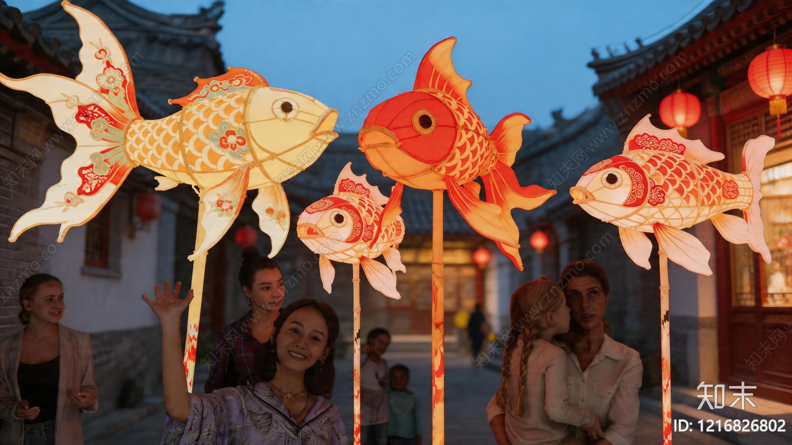 - 新中式非遗鱼灯花灯 传统金鱼灯笼 国潮锦鲤花灯 中式鱼灯装置 节庆鱼灯展示