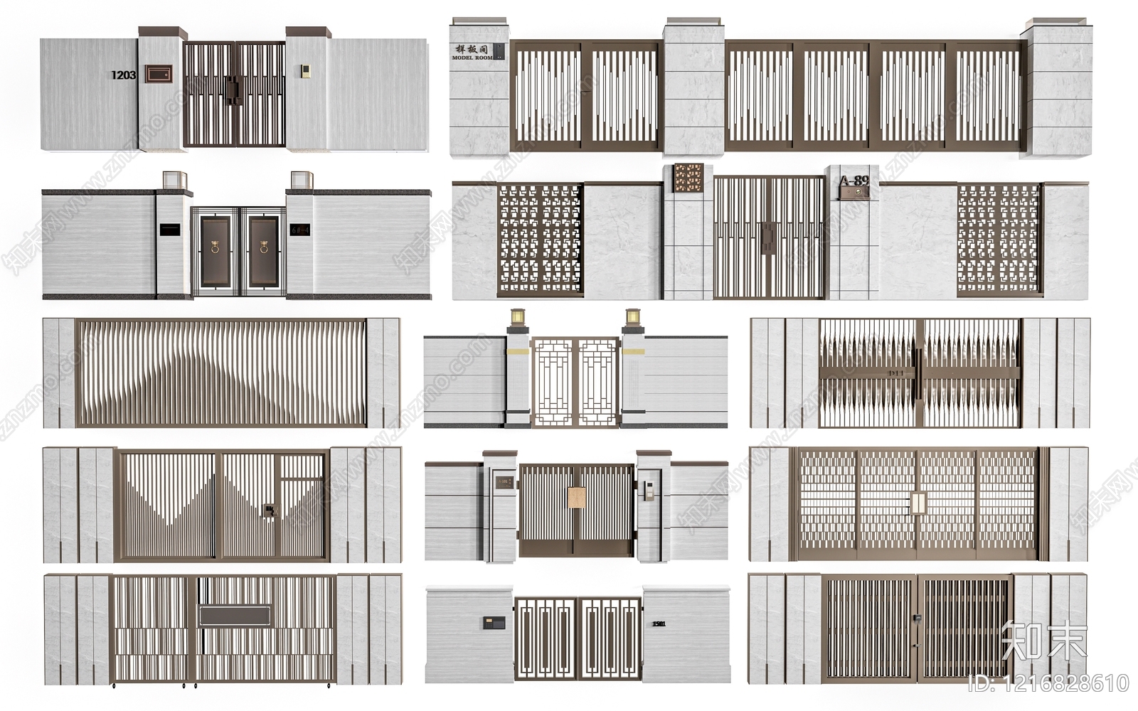 - 新中式庭院门 现代院墙 庭院门 院落围墙 小区围墙