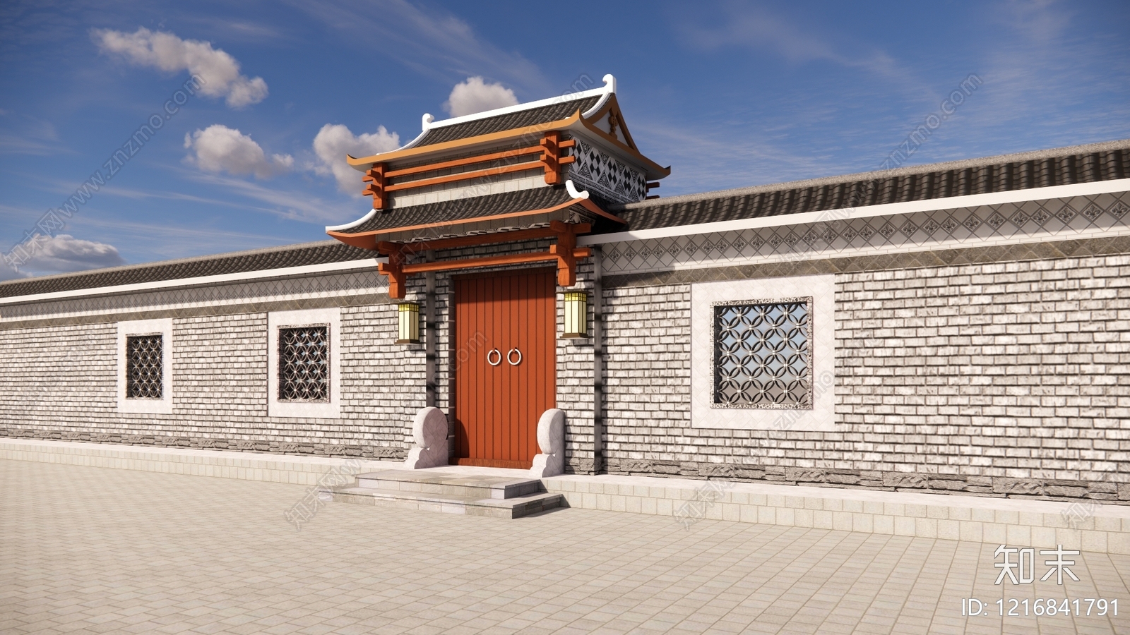 - 新中式入口大门 书院大门 影视古建大门 宋风建筑大门 寺院大门