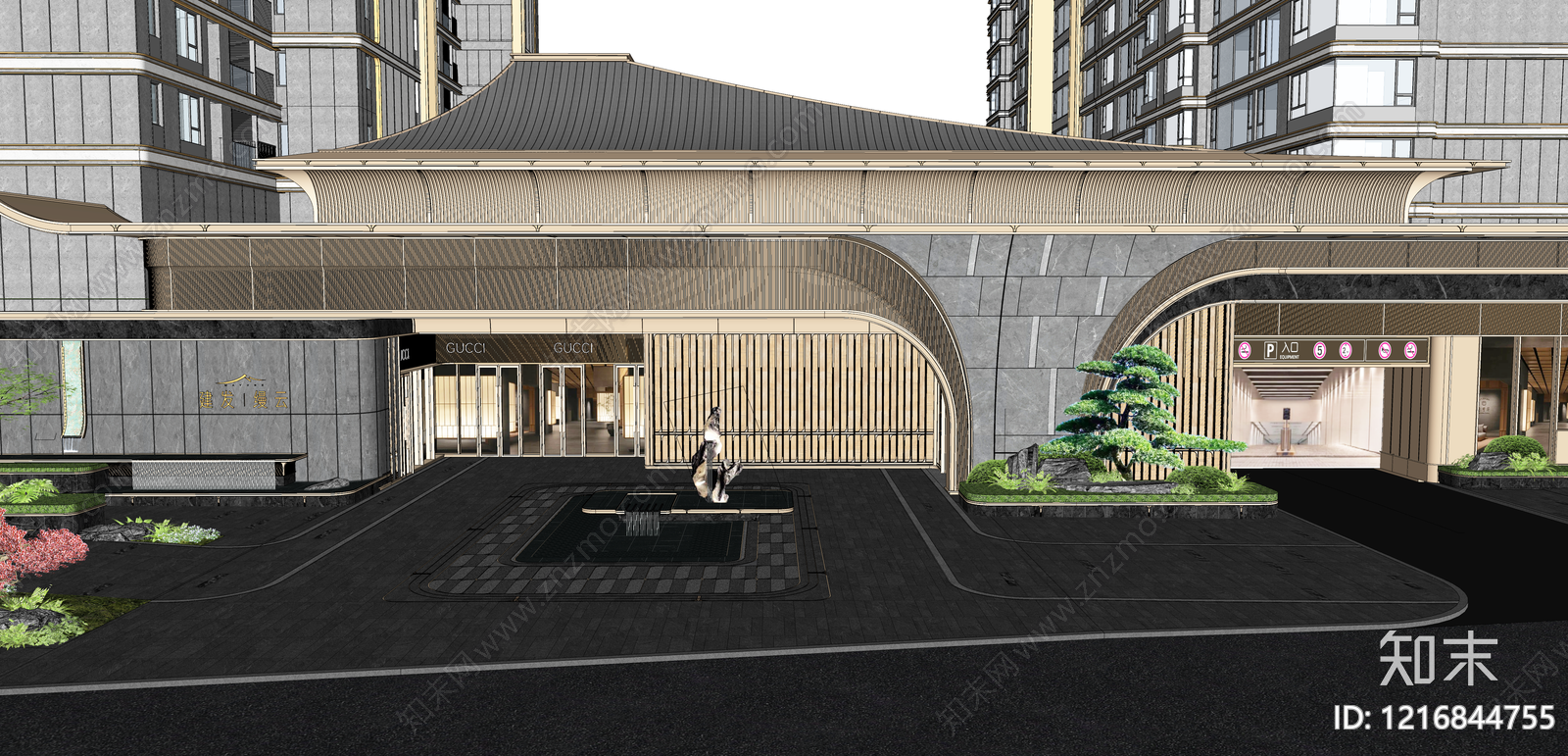 - 新中式小区景观 大区景观 示范区景观 现代大门示范区 现代高层住宅 滨湖上院
