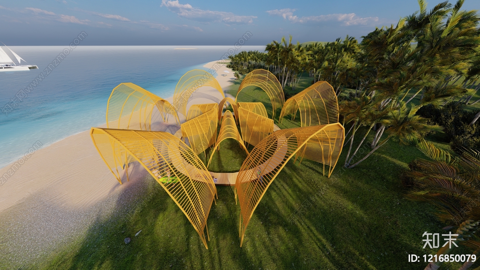 - 现代仿生主义小公建 竹亭舞台 室外公共景观 景观雕塑 舞台 城市家具