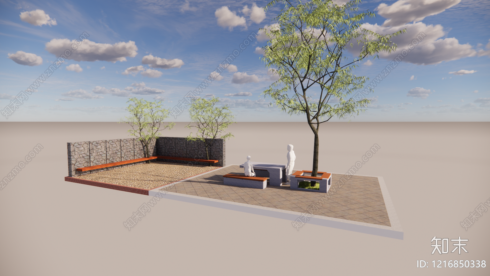 - 现代简约休憩花园 现代户外景观座椅 户外椅 景观植物 树池 花坛座椅