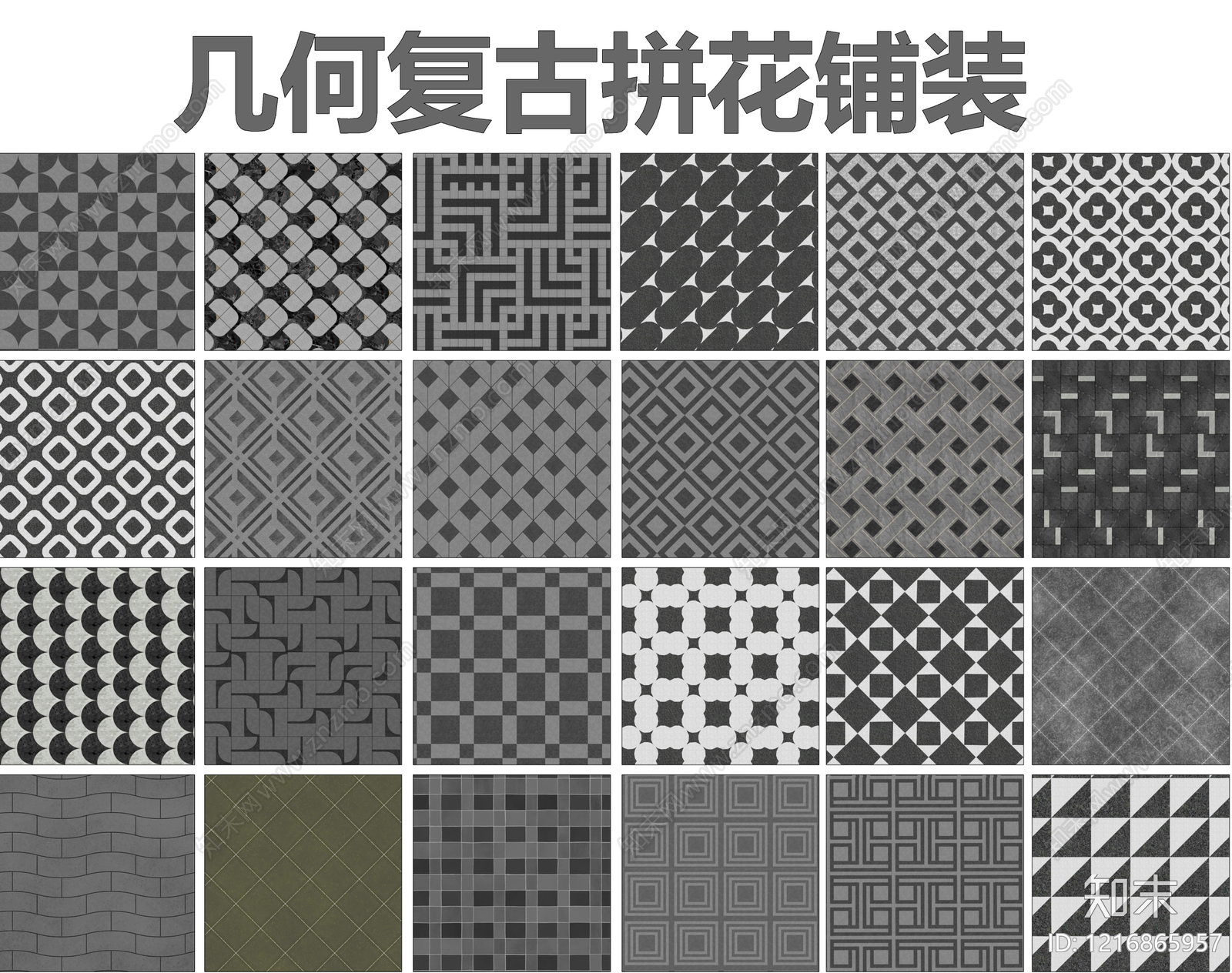 - 复古几何风石材 几何拼花地面铺装 复古地面铺装 广场景观铺装 几何复古铺装 仿古砖拼花铺装