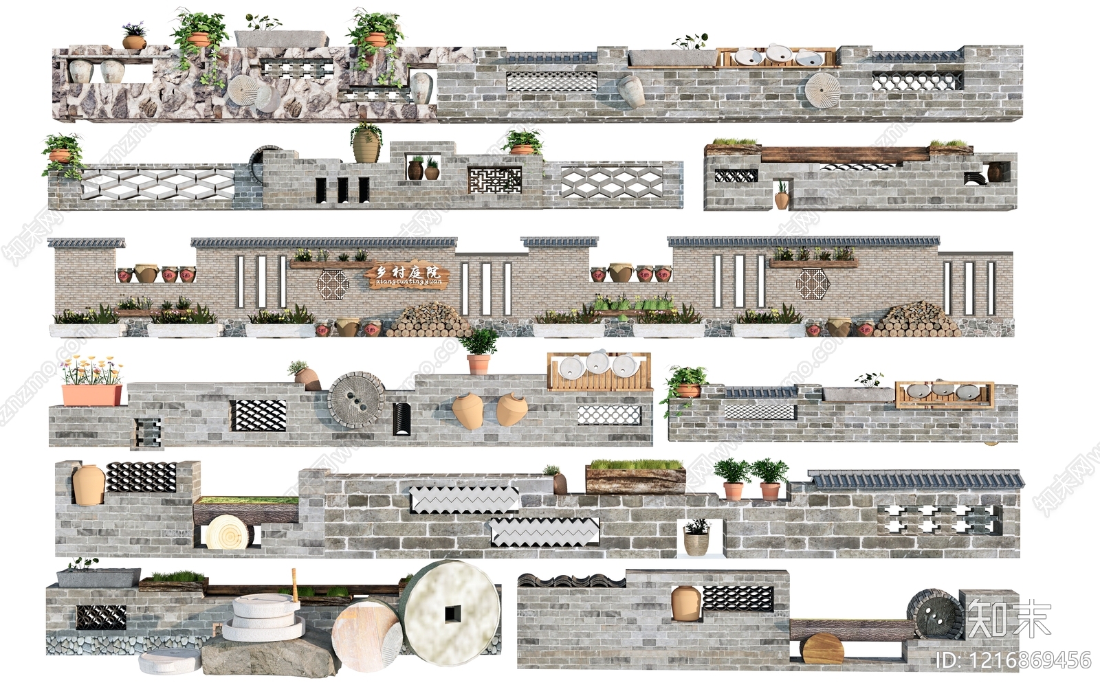 - 新中式景观景墙 入口景墙 组合景墙 入口标识 乡村振兴 美丽乡村