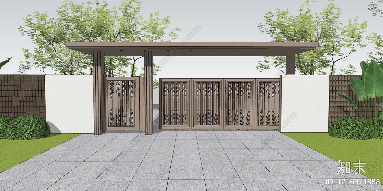 - 新中式入口大门 现代大门 庭院大门 景观大门
