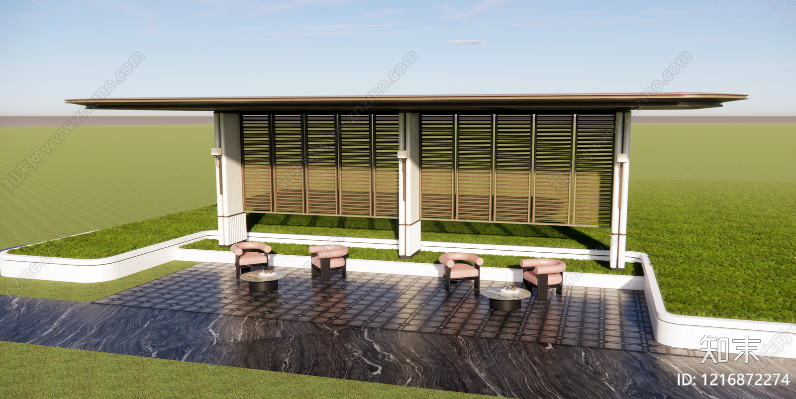 - 现代主义廊架 现代景观构筑物 公园构筑物 公园廊架 公园休息亭