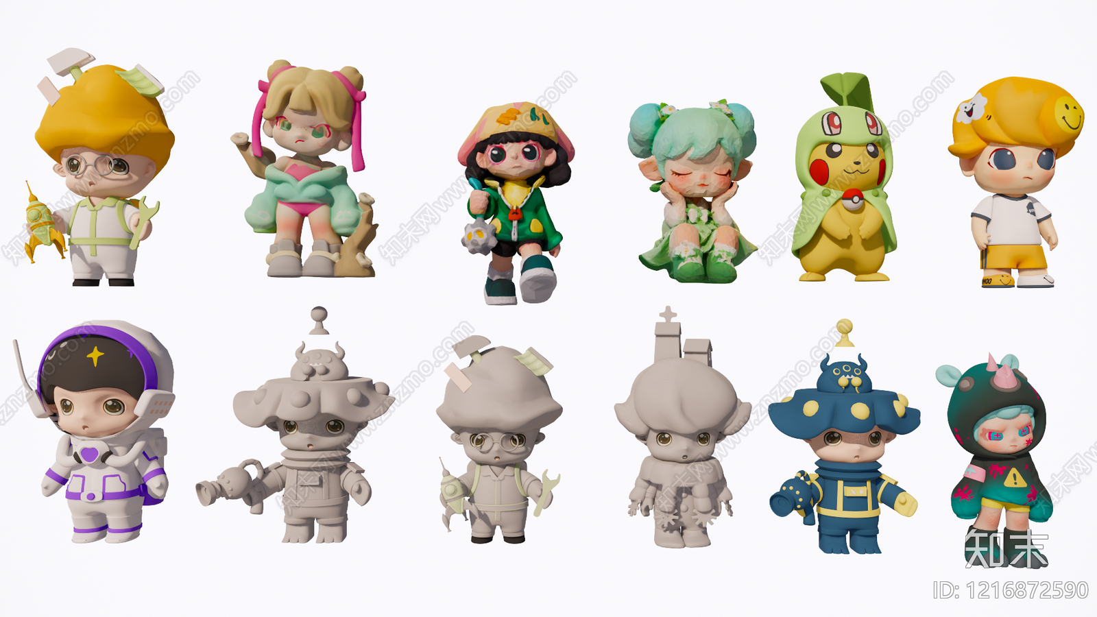 - 盲盒潮玩风格摆件组合 现代可爱艺术玩偶