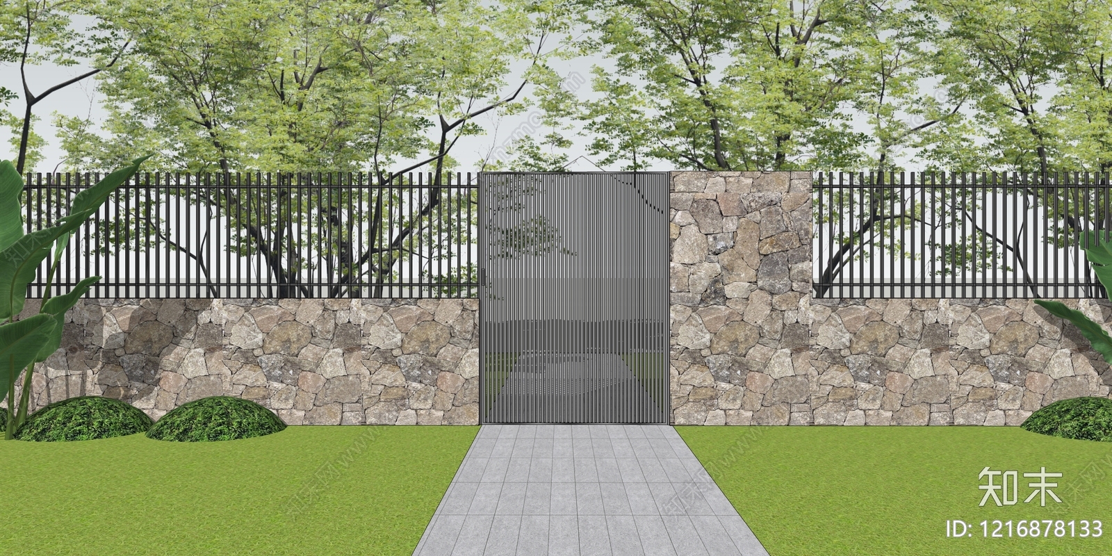 - 现代自然风入口大门 景观大门 庭院大门 现代大门