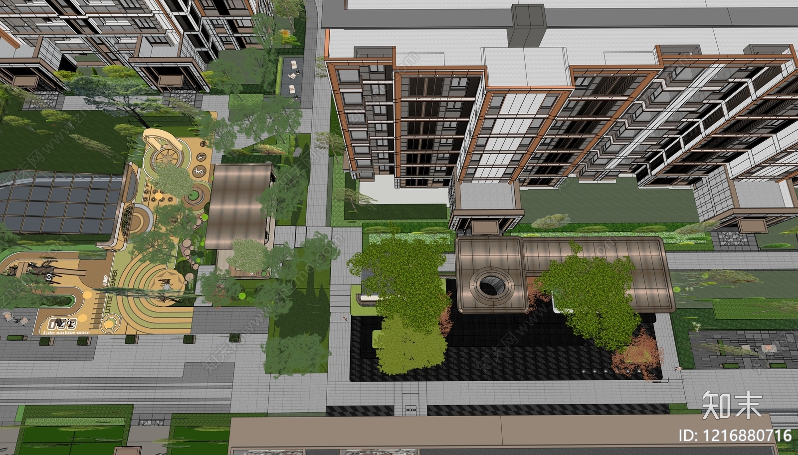 - 现代简约小区景观 现代小区景观 现代住宅区景观