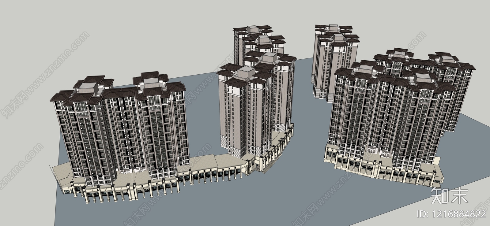 - 欧式小区建筑 高层建筑 洋房建筑 北美风格 商业街底商 景观