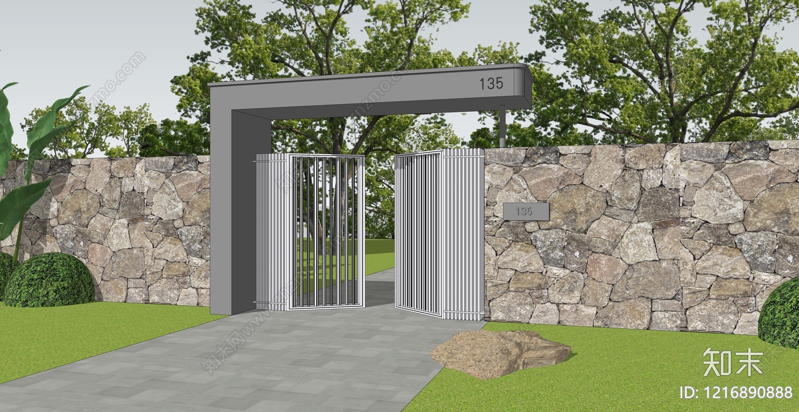 - 现代自然风入口大门 景观大门 庭院大门 现代大门