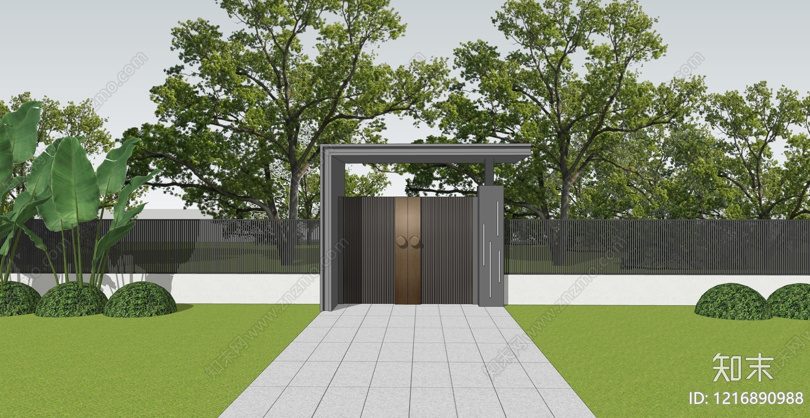 - 现代简约入口大门 现代大门 庭院大门 景观大门