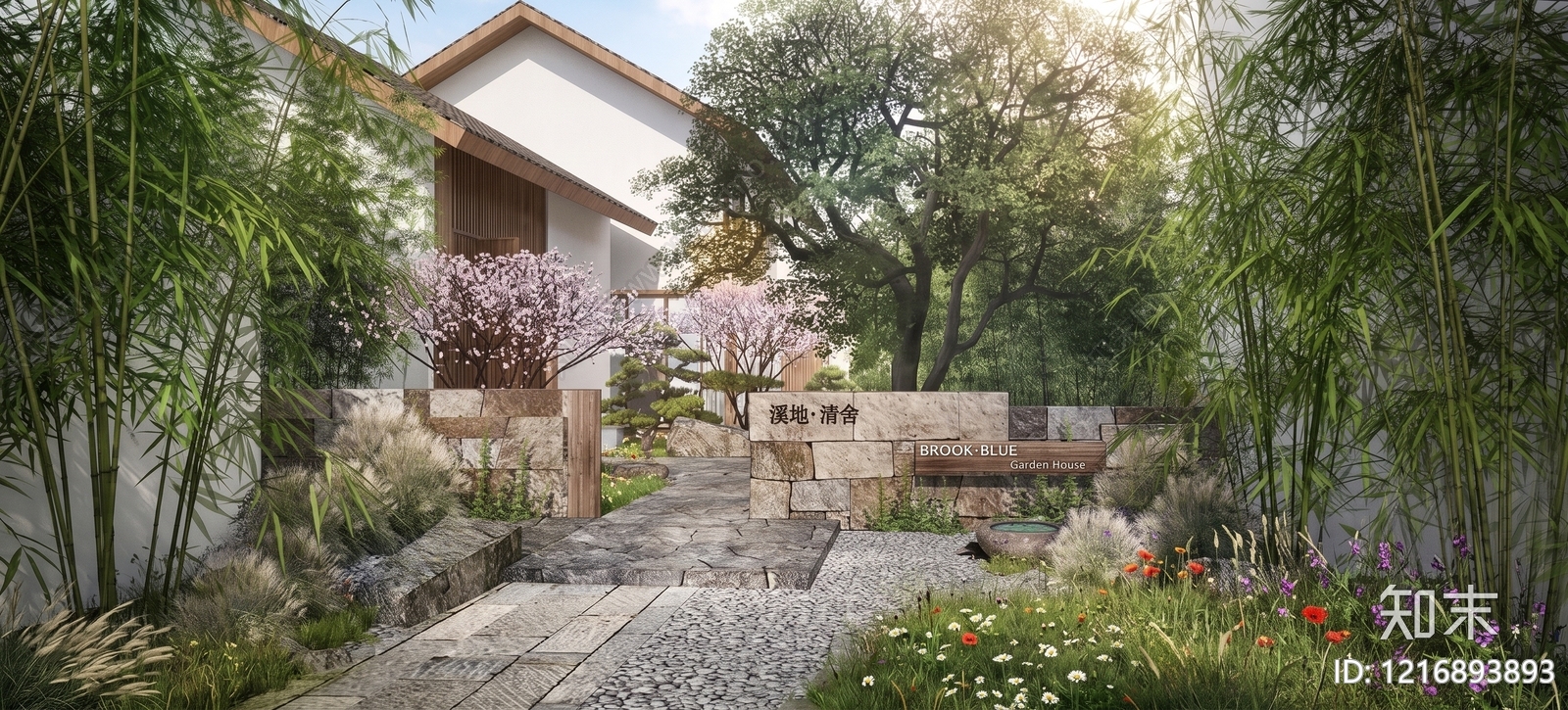 新中式别墅庭院 民宿入口 民宿庭院 庭院景观 石墙 院子入口