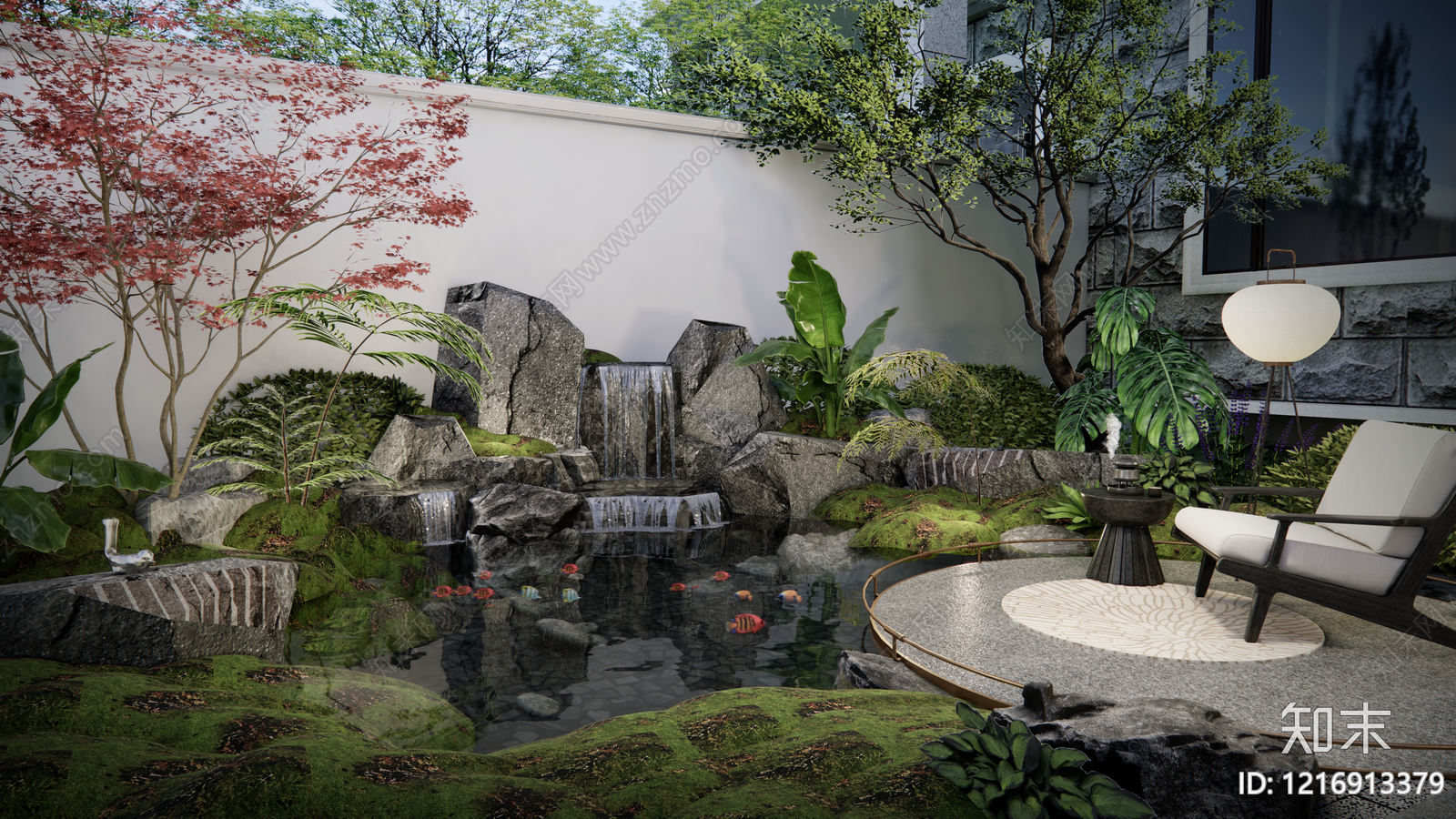 新中式别墅庭院 石头叠水花园 假山叠水花园 中式花园 花园庭院水景