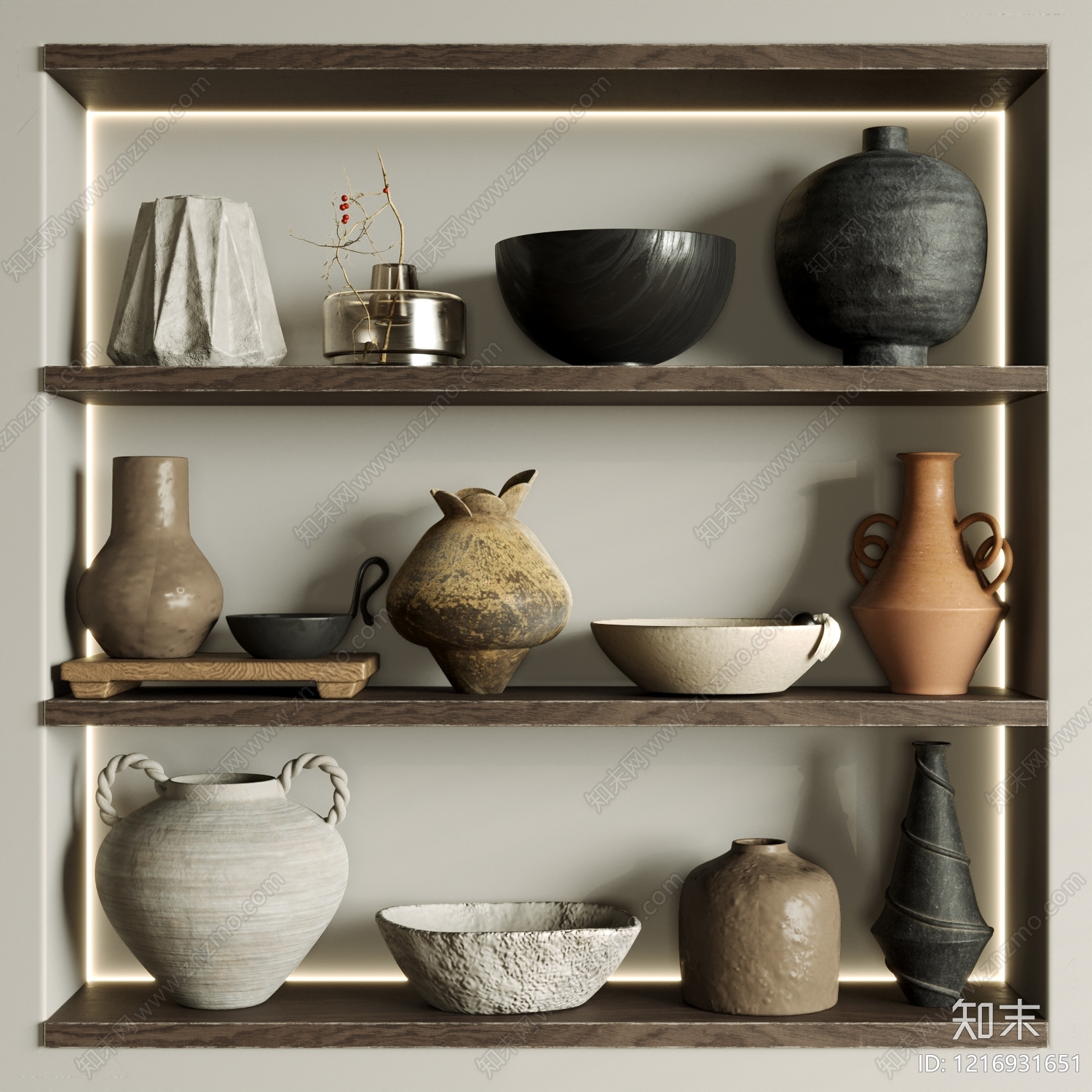 - 现代摆件组合 装饰摆件 花瓶 陶罐 书籍 雕塑