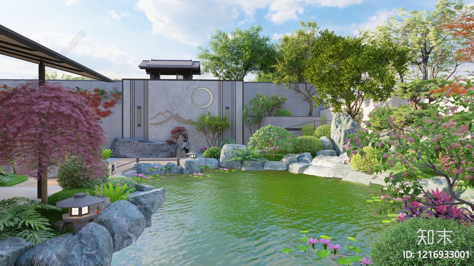 新中式景观别墅庭院 自然山水庭院 假山鱼池 中式庭院会所 高差庭院 自然庭院