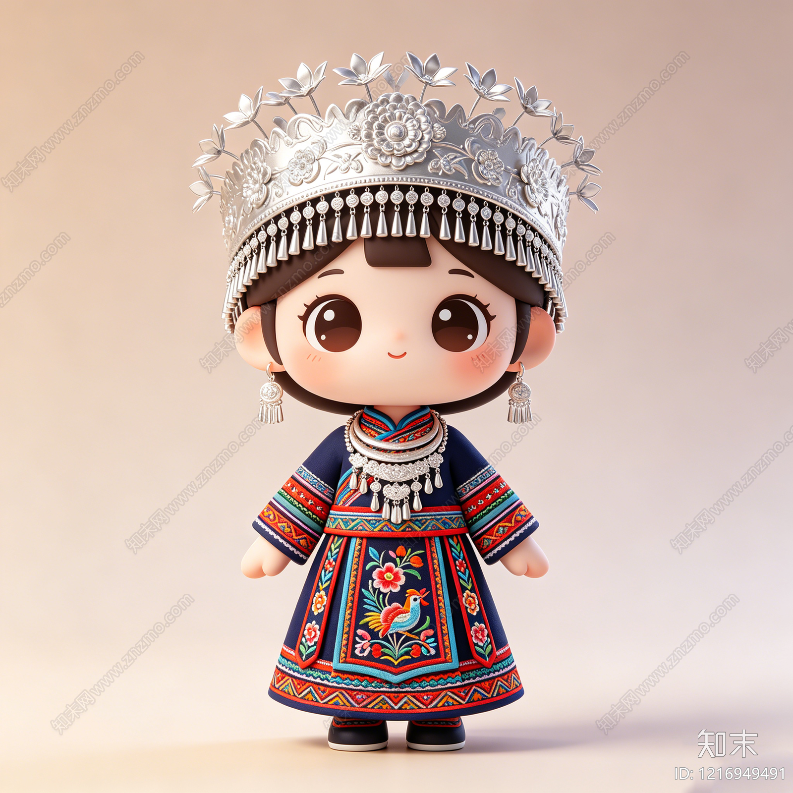 - 卡通Q版虚拟人物 少数民族 装饰 雕塑 ip设计