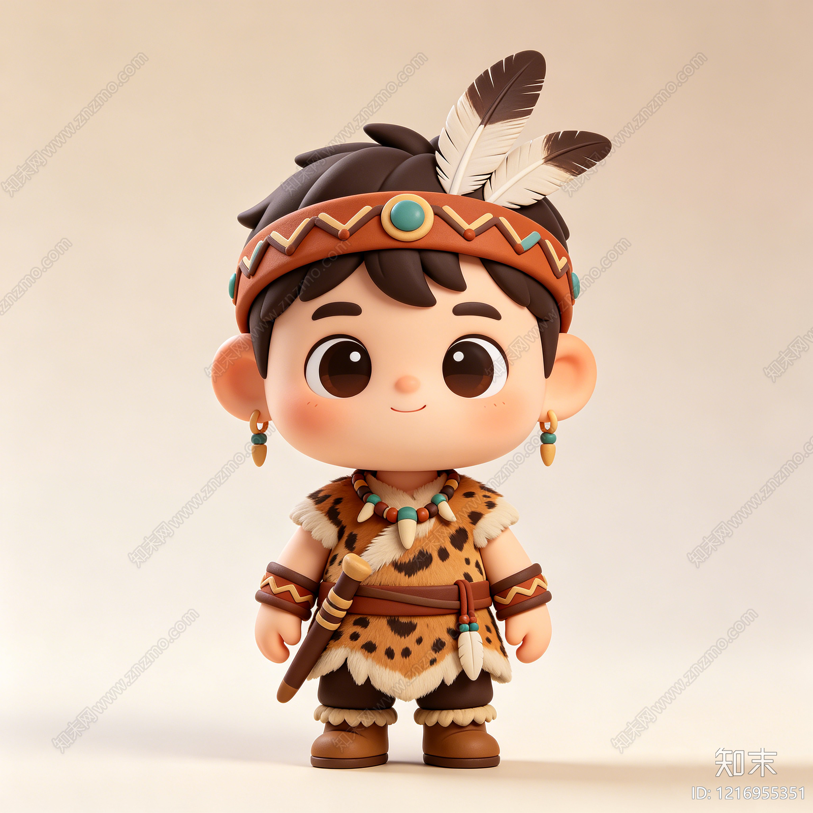 卡通Q版虚拟人物 少数民族 装饰 雕塑 ip设计
