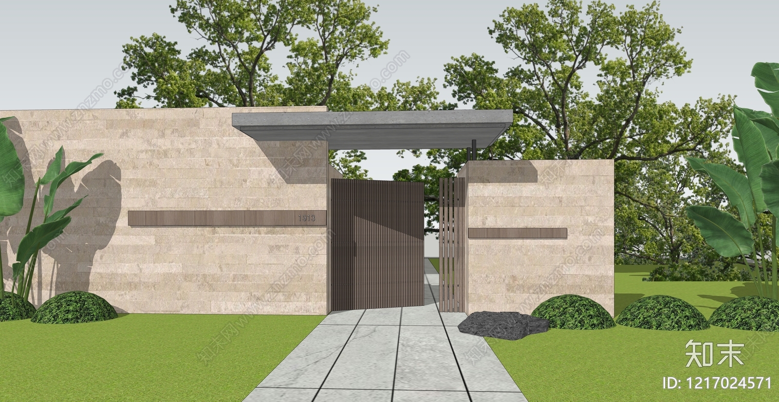 - 现代自然风入口大门 景观大门 庭院大门 现代大门
