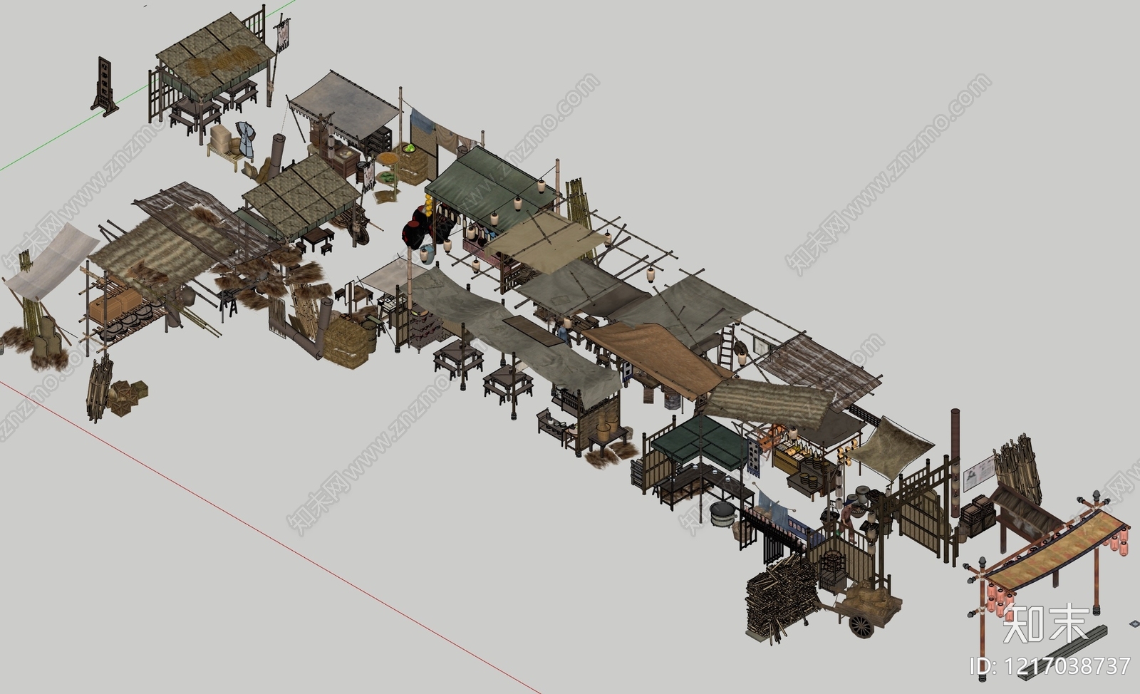 - 中式复古影视 集市 古代街道摊位 古代棚户区 古代商业街铺位 古代市井