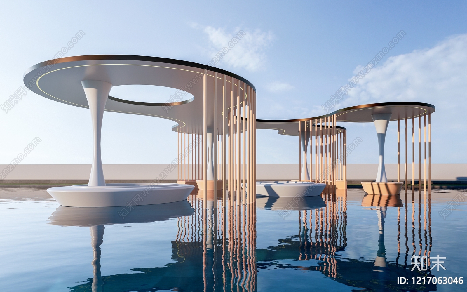 - 现代主义景观构筑 景观廊架 雨蓬 张拉膜亭 圆形伞状廊架