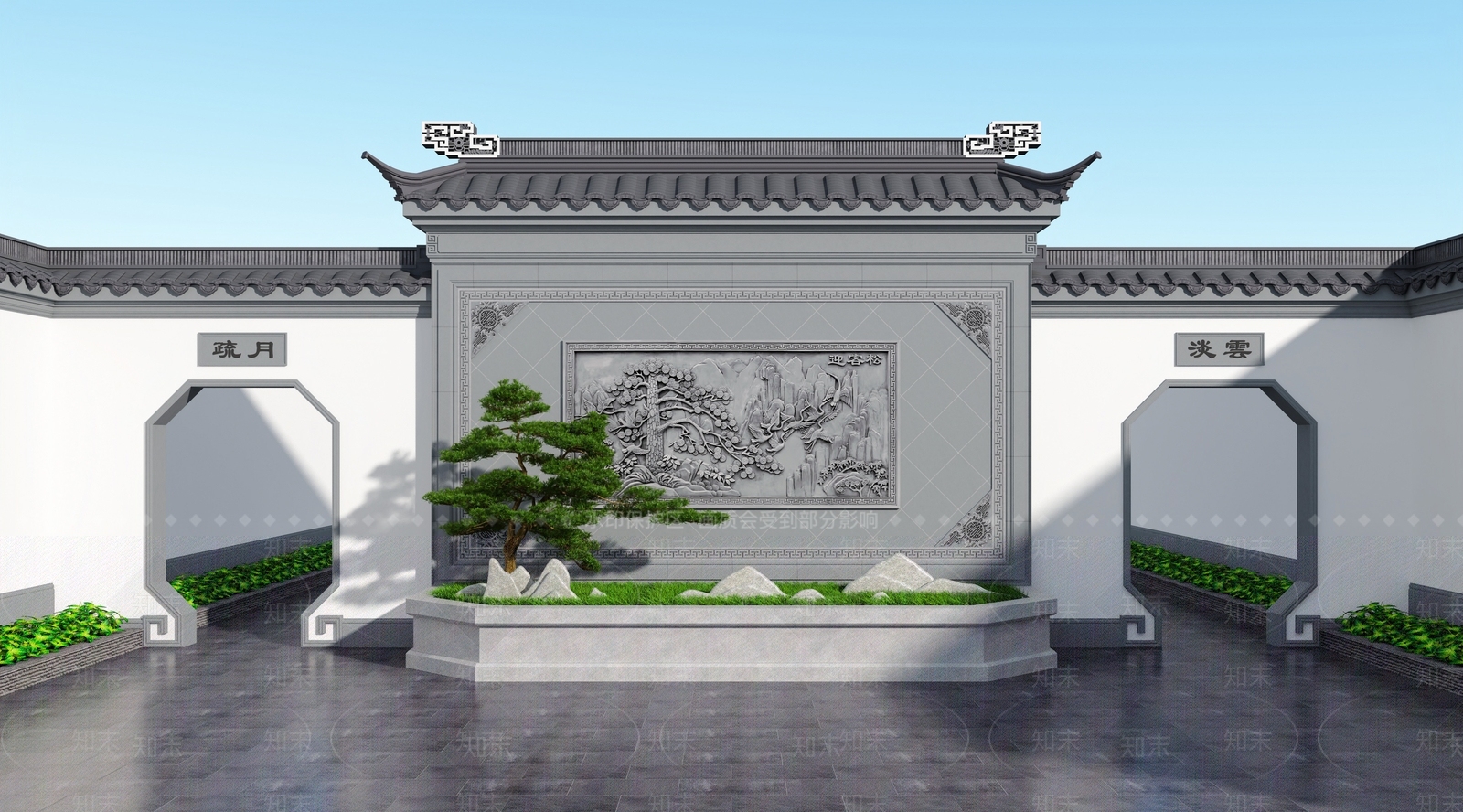 - 新中式移动景墙 可移动花箱