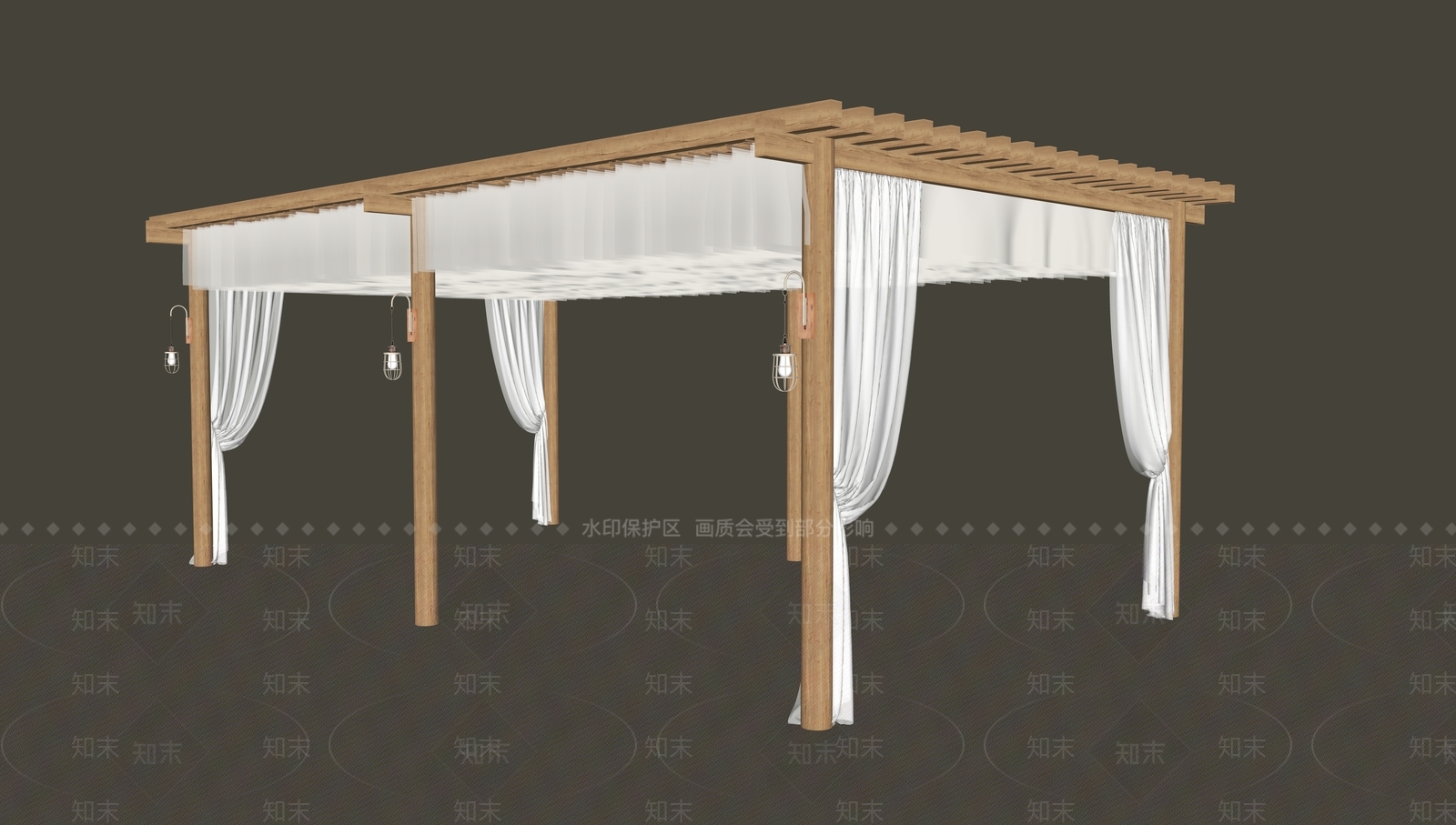 - 原木风廊架 景观风幔帷幔 民宿景观廊架 窗帘景观纱幔