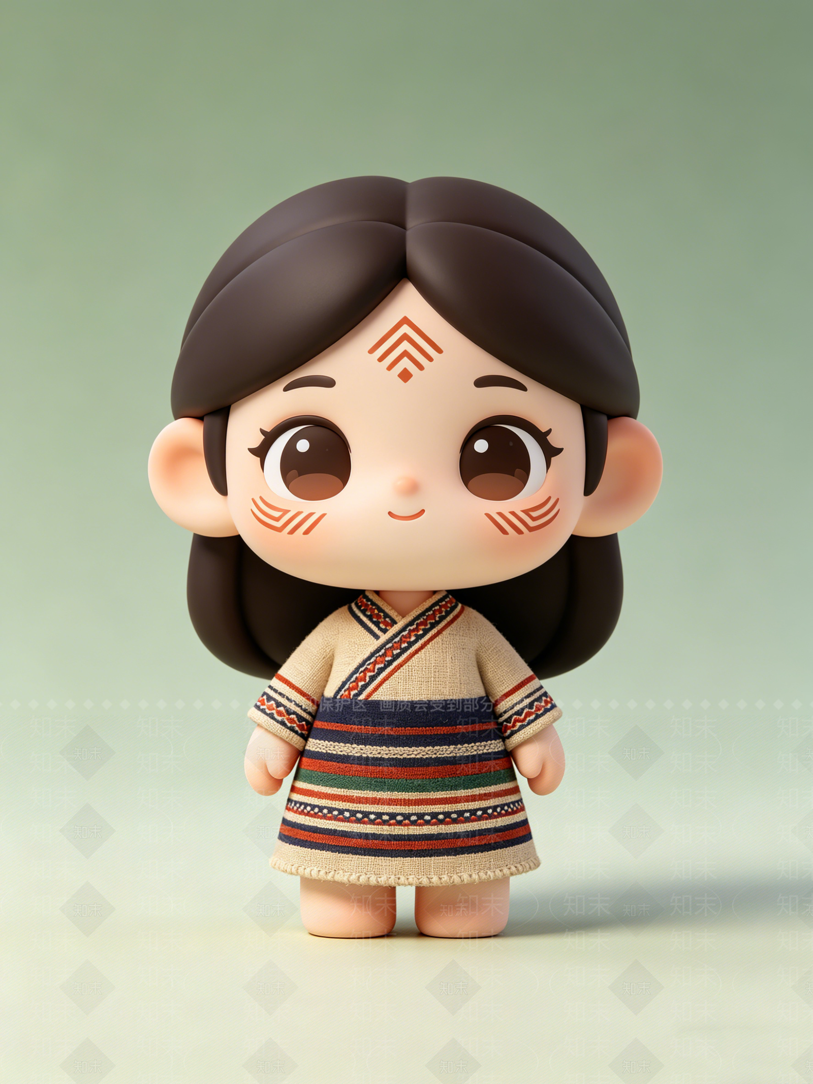 - 新中式Q版卡通风格虚拟人物 少数民族 装饰 雕塑 ip设计