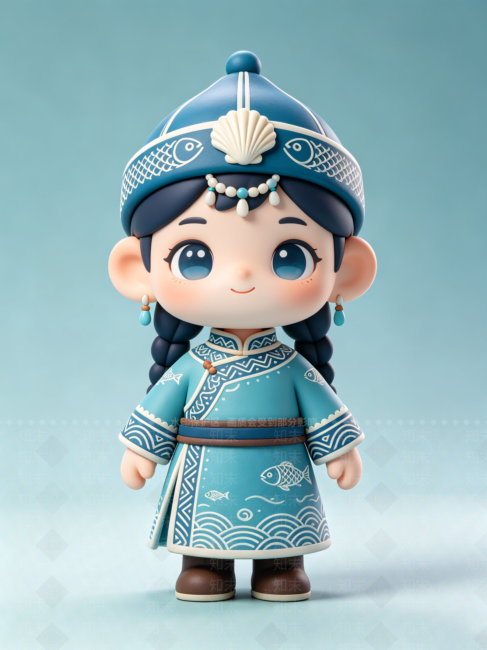 - 新中式Q版卡通风格虚拟人物 少数民族 装饰 雕塑 ip设计
