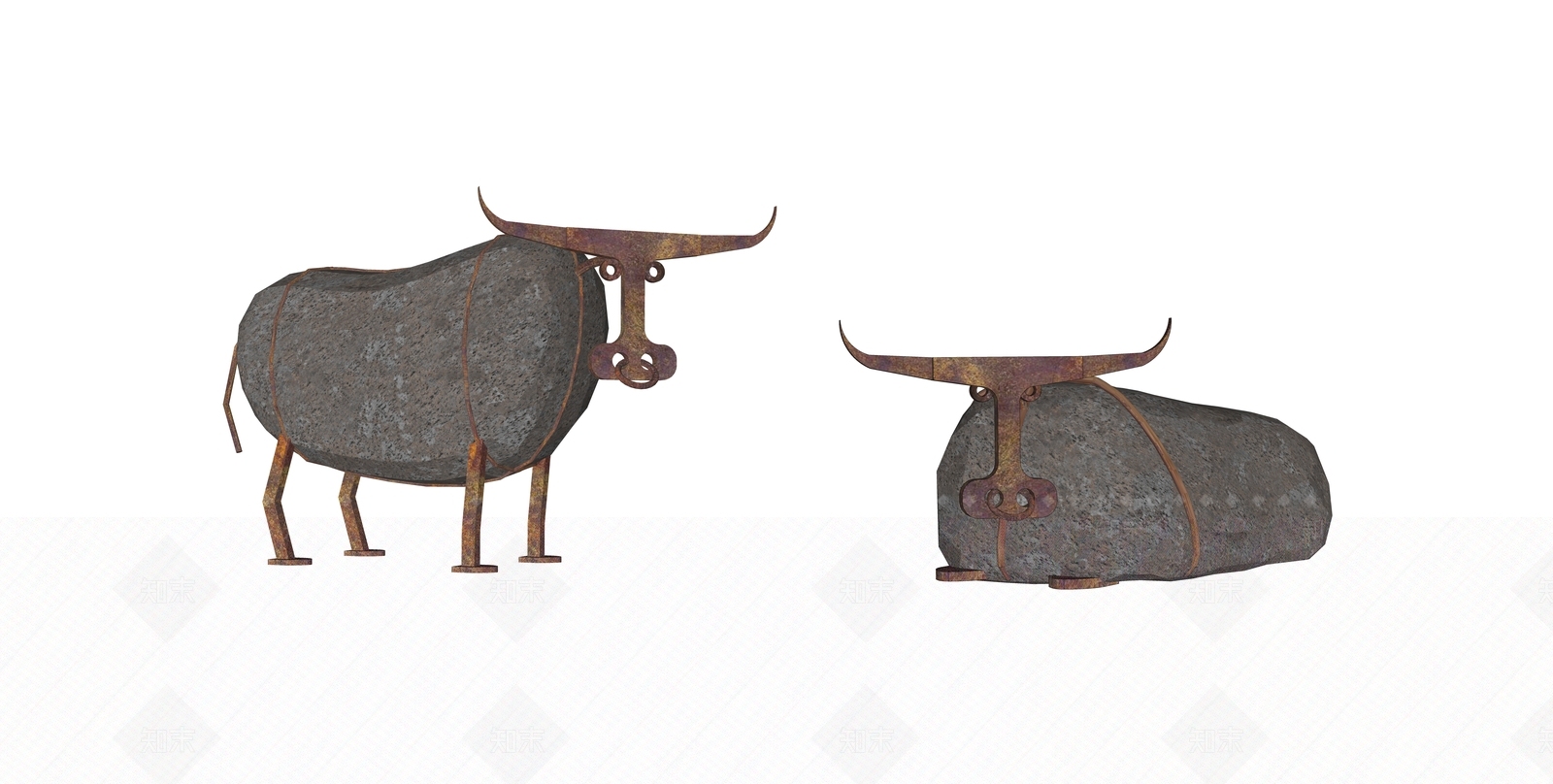 - 复古雕塑 石牛 动物雕塑 创意牛的雕塑 石头金属动物摆件 工业风动物小品