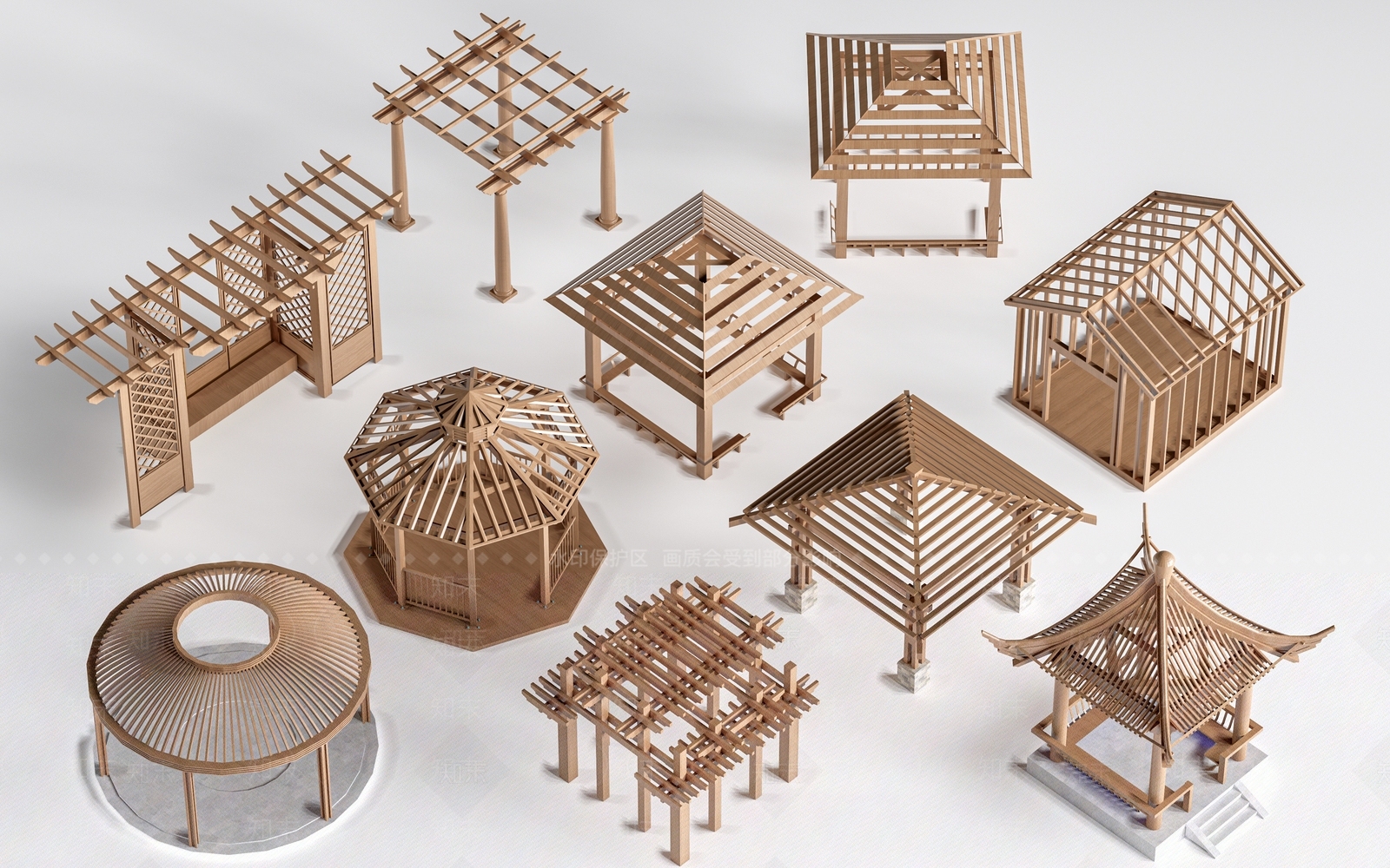 - 新中式亭子 现代景观廊架 景观亭 景观构架 凉亭骨架