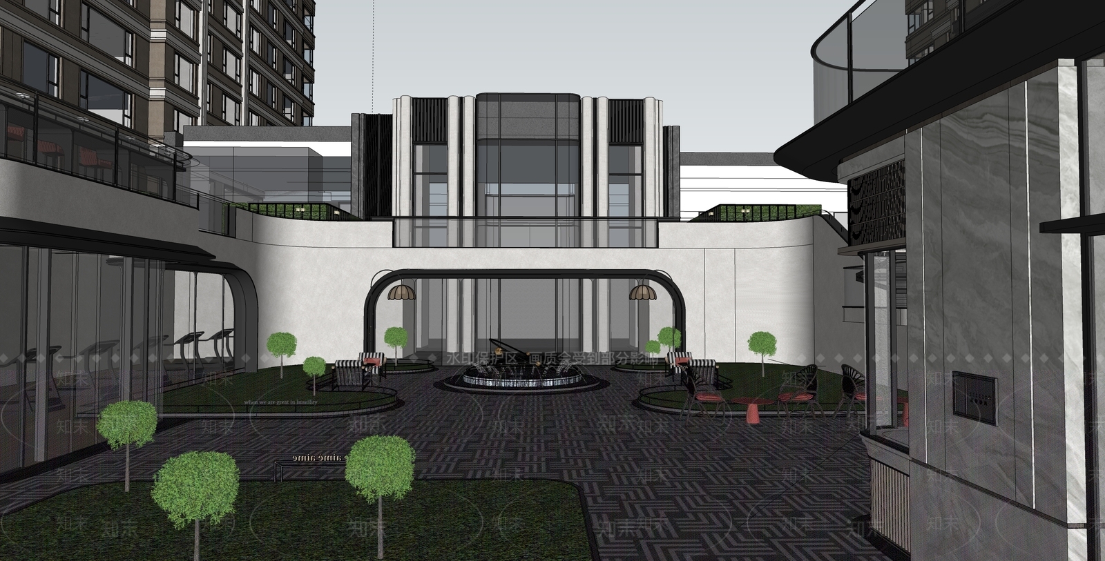 - 现代轻奢小区建筑 入口示范区 示范区景观 洋房建筑