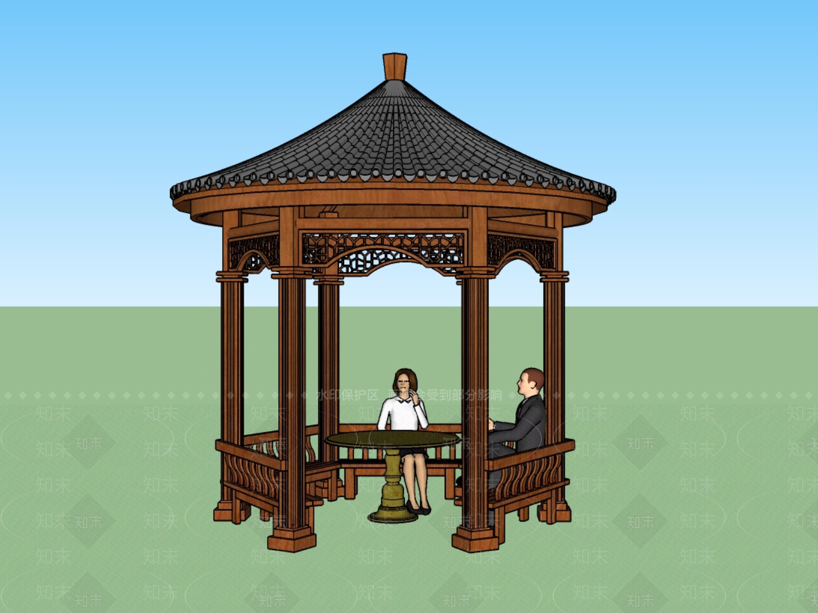 - 新中式古建筑 六角亭Su
