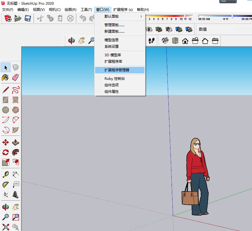 总结 打开软件并新建模型; 菜单栏点击窗口选择扩展程序管理器; 点击安装扩展程序; 选择rbz文件点击打开完成安装。